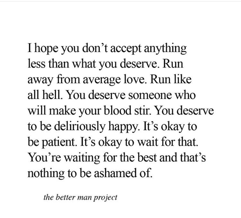 I know that for myself I’m learning to love and respect myself first and the right partner will nurture it.